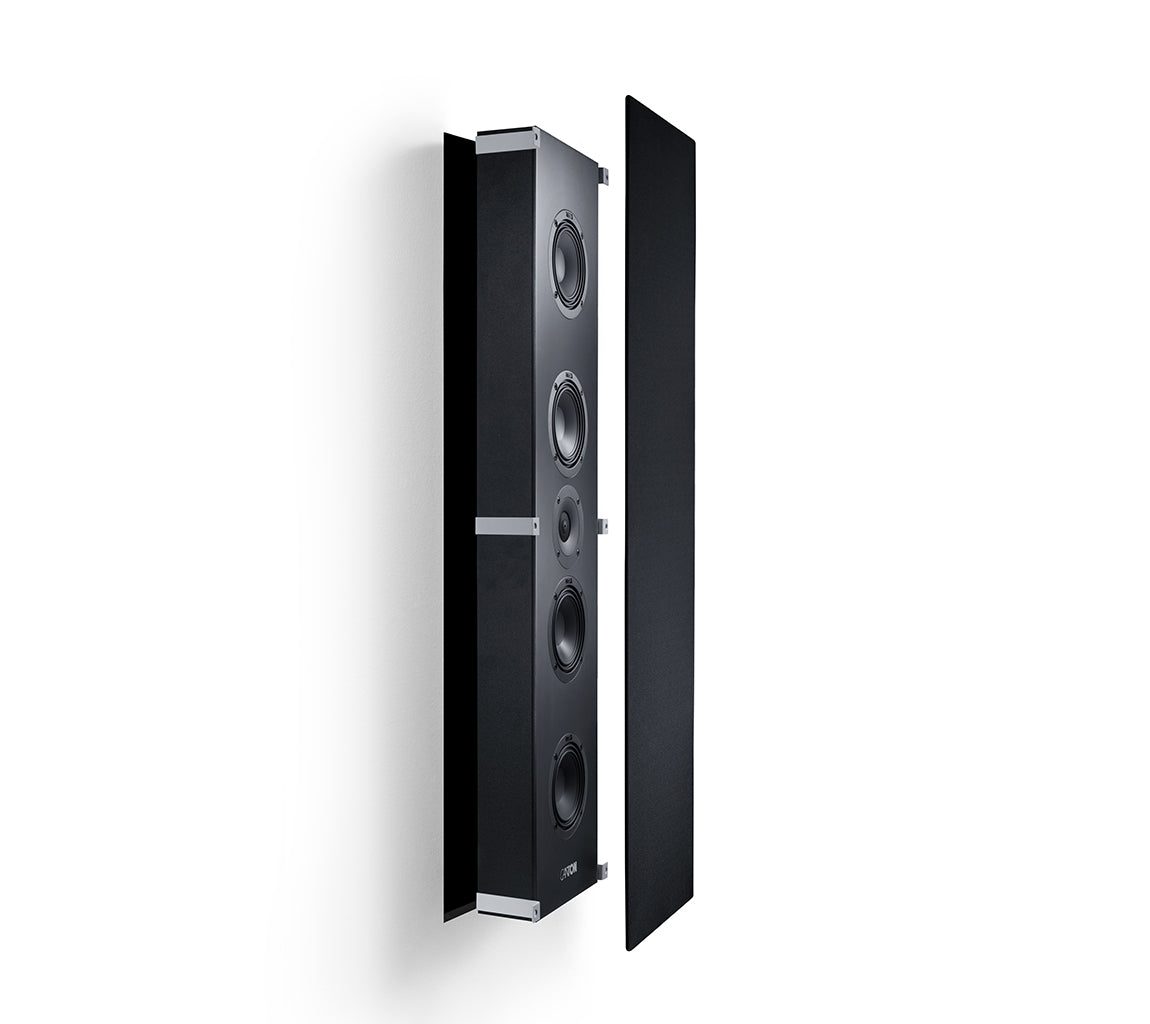 Het oversize, magnetische frontrooster zorgt voor een strakke, minimalistische uitstraling en verbergt alle klemsystemen en wandovergangen. Hierdoor integreert de InWall 9 volledig in elk interieur, terwijl hij hoogwaardige geluidskwaliteit levert. Of hij nu als losse speaker in de gang, als rear‑kanaal in een home cinema of als onderdeel van een volledige designopstelling wordt gebruikt, de InWall 9 combineert prestaties en esthetiek in één compacte, architectonisch geïntegreerde oplossing.
